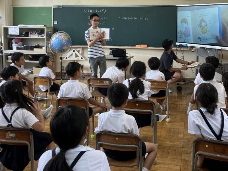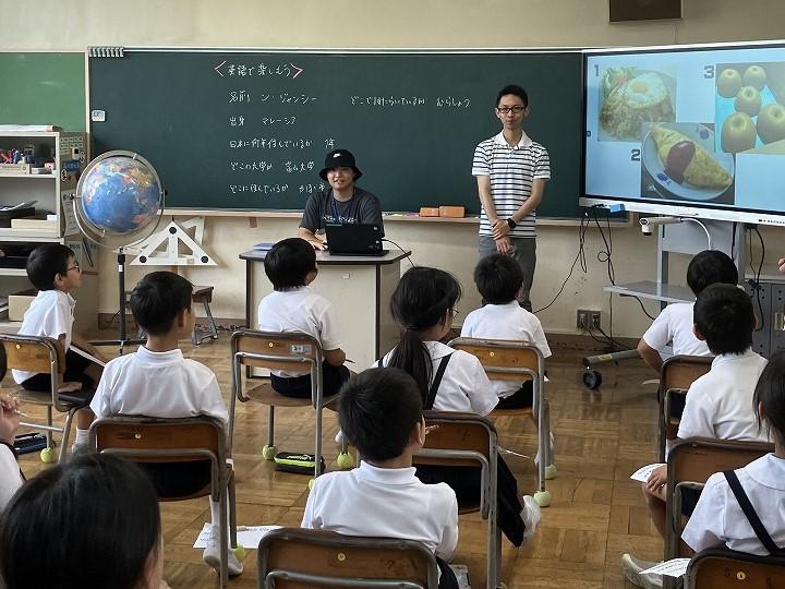 この日は、ジャンシーさんの英語の自己紹介を児童が聞き取ったり、出身地のマレーシアにまつわるクイズを英語で出してもらって児童が考えたり、ジャンシーさんのことを知るために児童が英語で質問してみたり、英語の本の読み聞かせをしてもらったりしました。
