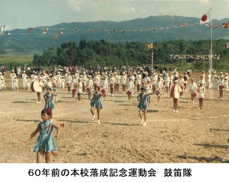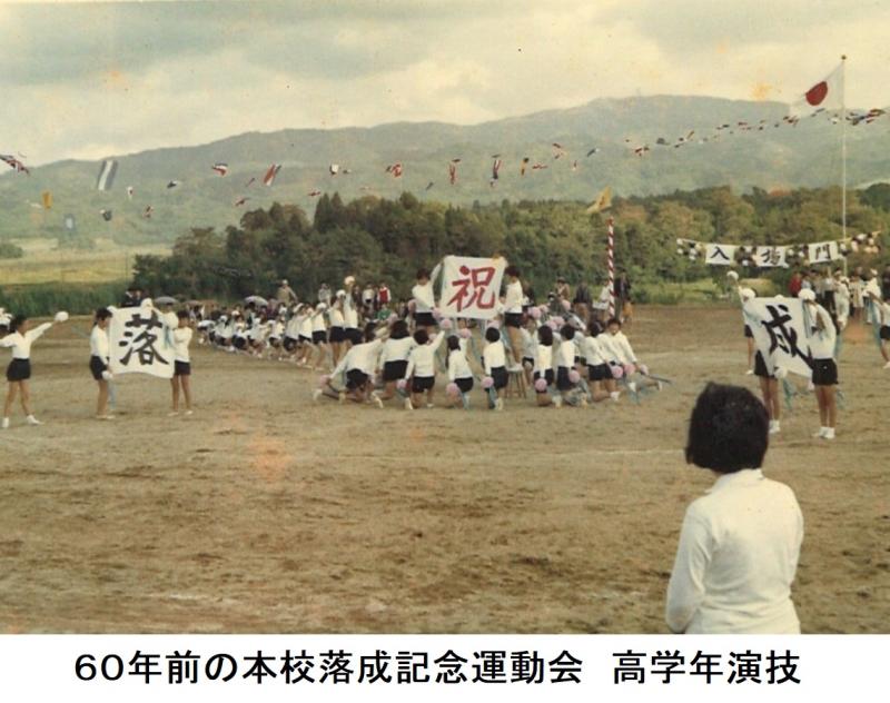 さて、運動会に先立って5月2日に全校集会があり、その時、子どもたちに「今月25日の運動会が、60年続いた押水第一小学校の最後の運動会になる」ということを、60年前に行われた落成記念運動会の写真を見せながら話をしました。
