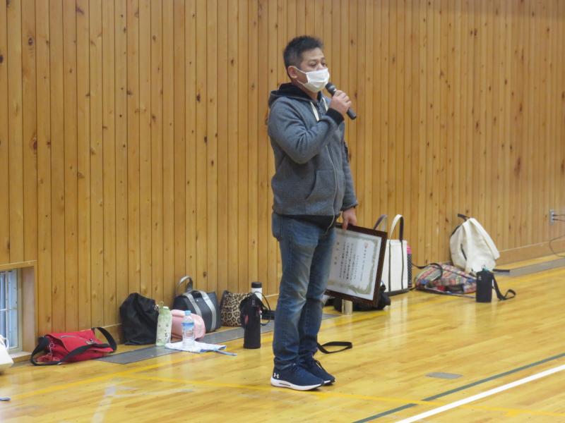 PTA親子行事開会式の前に昨年度PTA役員 林谷会長 岡野母親代表 に感謝の意を込めて,町PTA連合会より感謝状が贈呈されました。