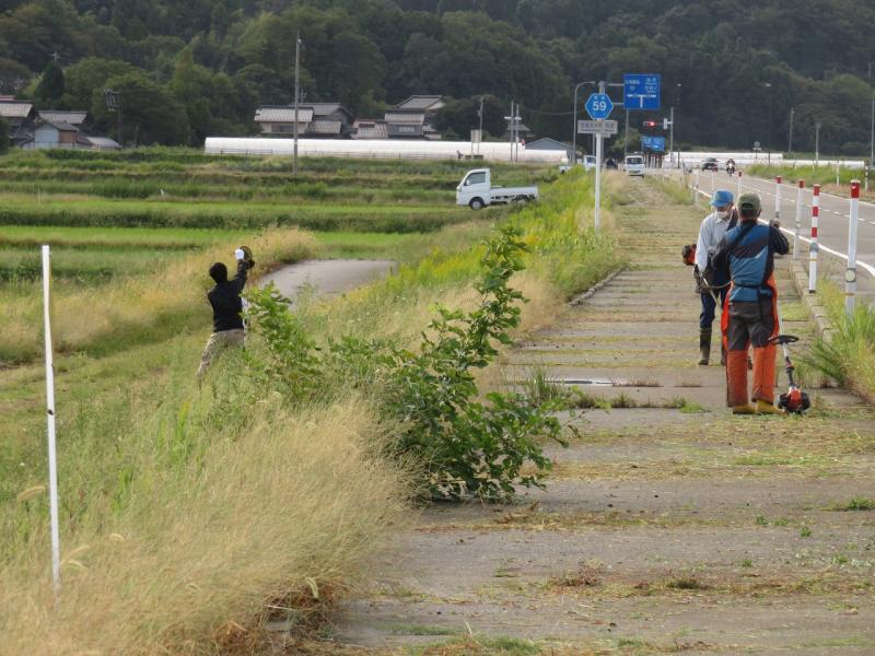 また,この日は,マラソンコースの設定場所である森本地区の方々にも,早朝からマラソンコースの草刈りをご一緒にしていただきました。加えて,地域の方には,これに先立って,8月末に免田地区で学校の体育館に隣接する樹林