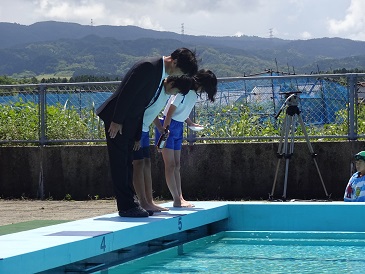 おきよめの式、6年生の模範泳法、児童の入水という流れで行いました。1,2年生は、水温が低かったので入水は控えました。1,2年生は、とても、残念そうでした。