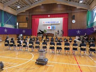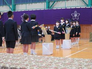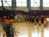 体育館では,式次第に合わせて予定通りに行うことができました。