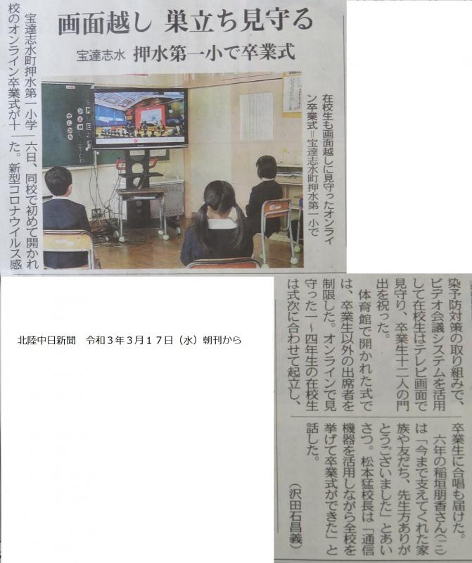 昨日の卒業式の様子を北陸中日新聞社に記事にしてもらいました。