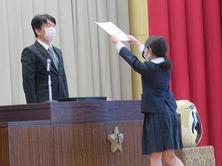 代表委員会委員長の寺岡さんが,任命書を代表して受け取り,その後,それぞれの委員会の委員長,学級代表が