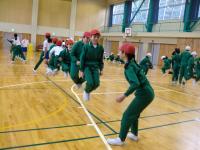 左義長の後、6年生親子が集まり、ソフトバレーボール大会を行いました。