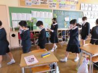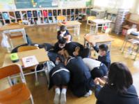 3年生の教室では,まず,教室中央で安全な体勢をとりました。
