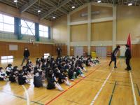 最後に,6年生による模範八の字跳びです。流石6年生らしく,素晴らしいチームワークと軽快なフットワークで,全校の視線を釘付けにしました。是非,「スポチャレいしかわ」での御活躍を祈ります。