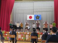 当日は、1年生、2年生、3年生、4年生は教室でいっしょに卒業式に参加します。そのために練習は卒業生といっしょに行います。