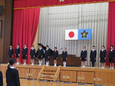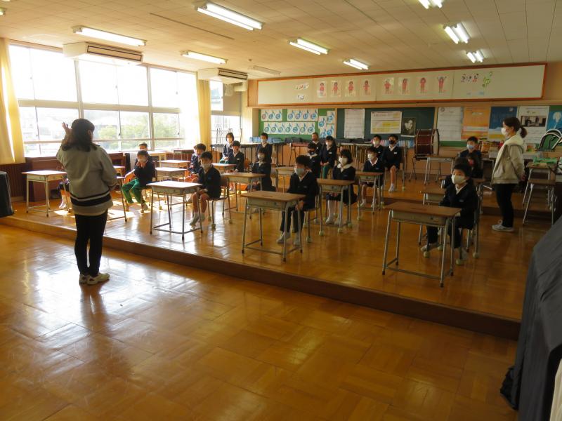 1,2年生は、5,6年生の練習を見学しました。その後、音楽室で、卒業式に参加するに当たっての心構えを習いました。