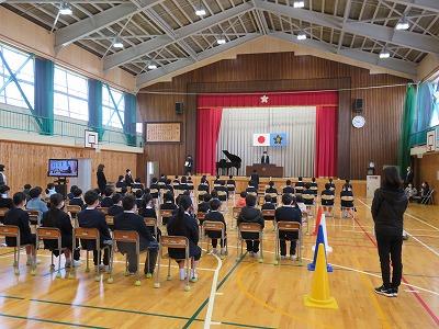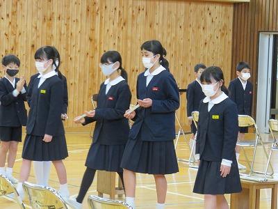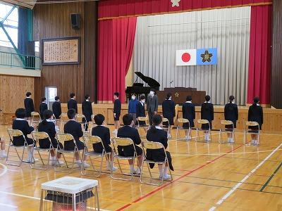 全校で卒業式を行うのは2年ぶりです。厳粛な雰囲気の中挙行出来ました。16日当日は、1年生、2年生、3年生、4年生は、教室で卒業式に参加します。今日の予行で、卒業式の雰囲気をつかむことが出来たと思います。