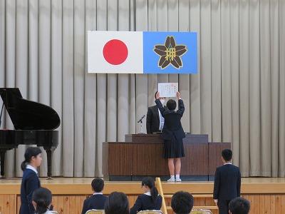 13日(水)に実施しました書き初め競書会の表彰を本日の給食後に行いました。