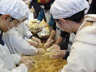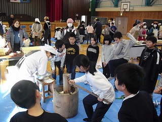 3月の卒業式に使うコサージュを地元の方の指導の下,親子で1個つくります。長年本校で勤務している職員によると,この活動は,少なくとも7年以上も前から続いているそうです。