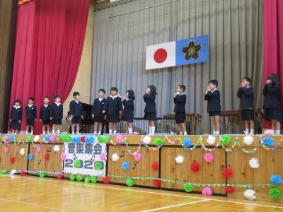 最後に,6年生河端君から4年生へお褒めの言葉のプレゼントがありました。