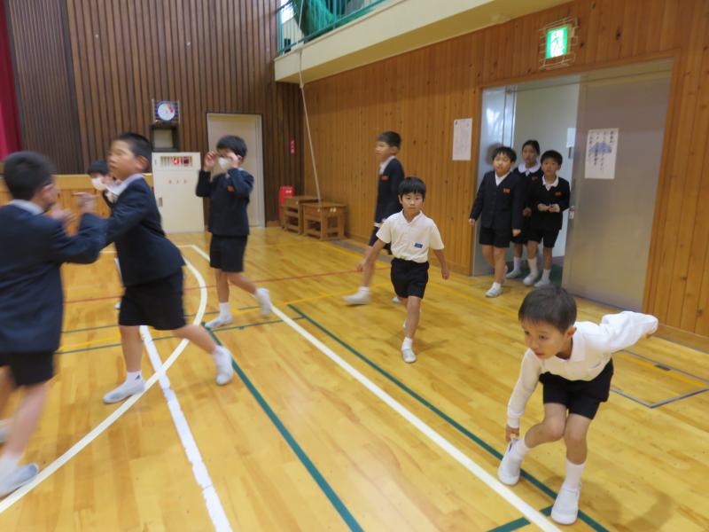 次に,鼓隊演奏の並び方の練習をしました。音楽集会がとても楽しみですね。