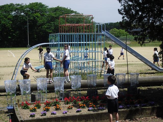今日は気温がぐんぐん上昇して30℃近くまで上昇しました。相変わらず子どもたちは元気です。今日は,若い先生方も子どもたちといっしょに鬼ごっこをしていました。