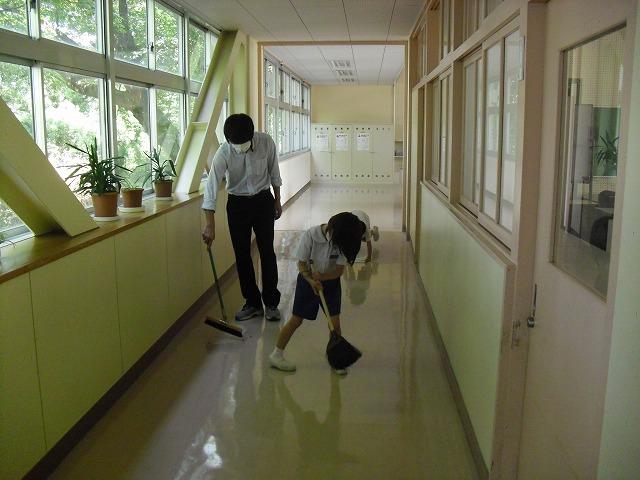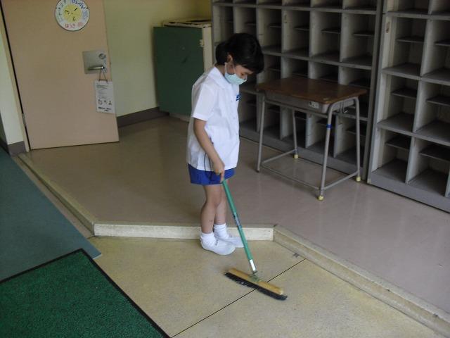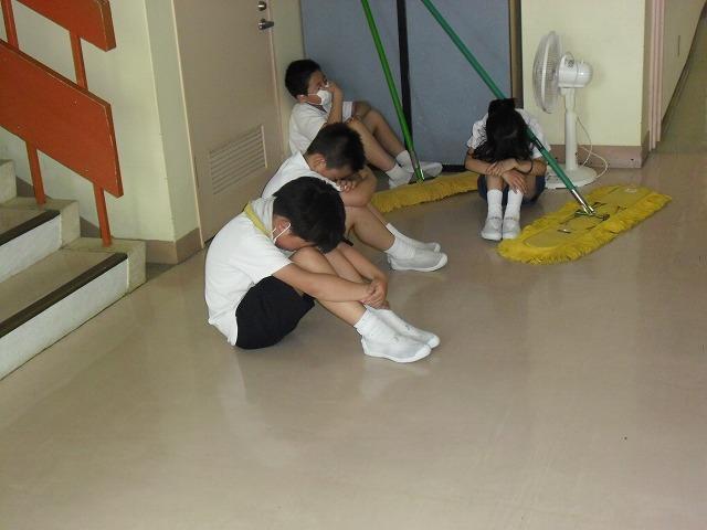 1年生も掃除の仲間入りをしています。慣れない雑巾しぼり,掃き掃除,ゴミ集め,どれも大変ですが,一生懸命に学校に貢献しています。頼もしいです。 (写真は,清掃前の黙想)