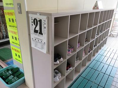 1年生の下足箱が埋まっています。朝の「おはようございます」の声がとっても愛らしく,とっても元気でした。1年生の教室です。全員そろっての出欠確認です。「はい。元気です」の声がとても可愛かったです。