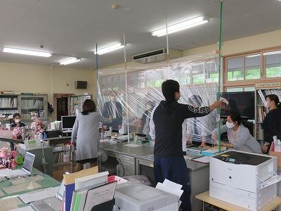今日も,近隣の学校から情報を頂き,職員室内のコロナ対策をしました。