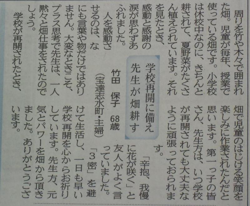 本来ならば,各ご家庭がこのような状況の中,困っていらっしゃるはずなのに学校職員に対してお気遣いのお言葉でした。