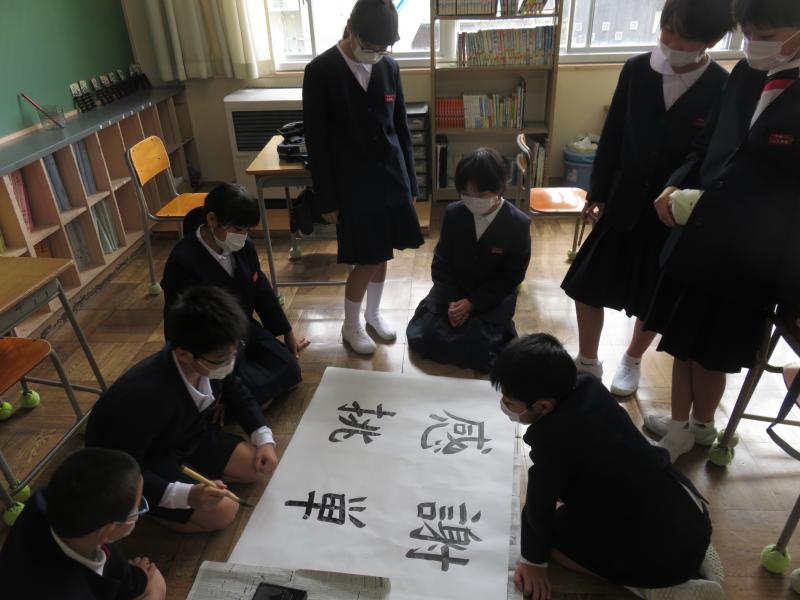 ※ 写真は,学級目標を書いている最高学年の6年生の様子
