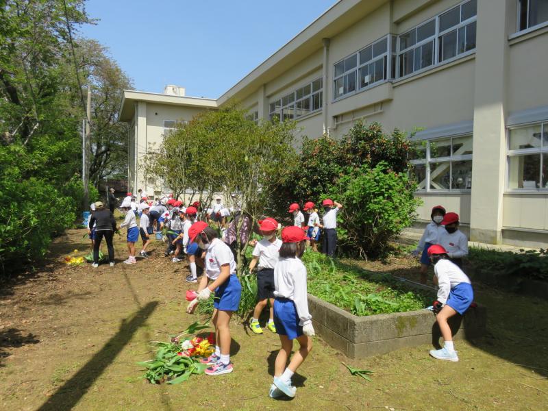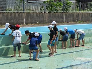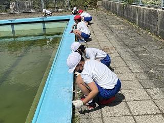 まず6月8日に3・4年生がプールサイドの草むしりをしました。