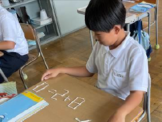 また5年生は、算用数字の成り立ちを学んだあと、マッチ棒で作った等式を1本だけ動かして別の等式を作る内容でし