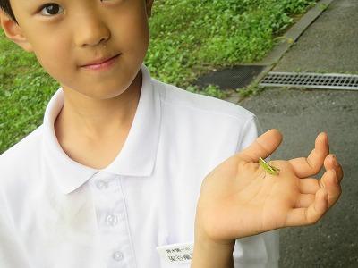 (写真2)バッタを捕まえたので見せてくれました。