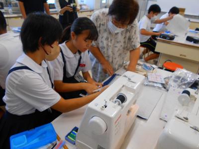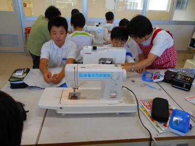6年生は、家庭科でミシンをかける学習をしています。9月16日(火)18日(木)には、地域の方がボランティアとして6年生のミシンかけの補助をしてくださいました。ボランティアの方にやさしく教えていただきながら、丁寧にミシンをかけた6年生。仕上がったナップサックに大喜びでした。ボランティアの方々も「子ども達とのふれあいは、楽しかった!」と言ってくださり、本当にありがたかったです。お忙しい中、ありがとうございました。