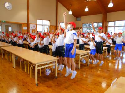 運動会の種目の1つに応援合戦があります。児童は、紅白に分かれ応援練習を行っています。それぞれ、3・3・7拍子や応援歌、相手チームへのエールなどの練習を6年生がリーダーとなって進めています。運動会当日は、息の合った応援ができるように、頑張ります!