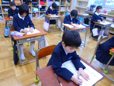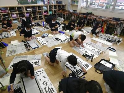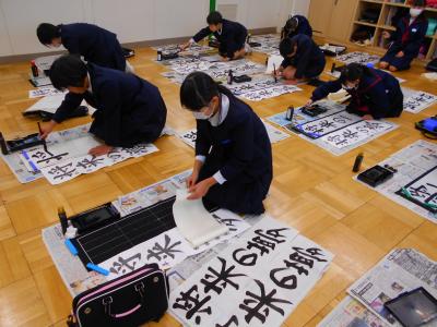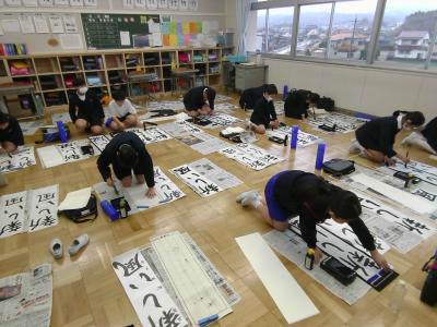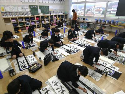 2026年になり、3学期がスタートしました。1月8日は、書き初め競書会を行い、児童は、練習の成果を発揮しようと、お手本を見つめ丁寧に書き上げていました。また、9日から15日に行われた書き初め展示には多くの方が訪れ、ずらりと並んだ児童の作品を見ていかれました。