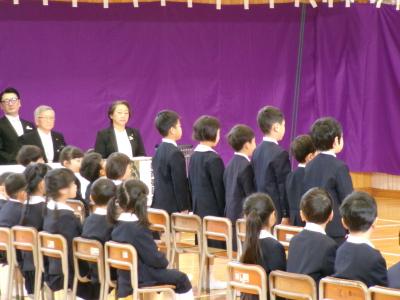 4月6日(日)押水小学校の開校式が行われました。それまで降っていた大粒の雨もあがり、暖かな春の光が降り注ぐ体育館にて、ご来賓、地域・保護者の方々を迎え、5・6年生の児童が参加しました。