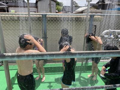 6月9日(月)にプール開きをしてから、子ども達は楽しくプールに入っています。プール開きでは、代表委員会の児童がプールに塩をまき、みんなで安全を祈願しました。
