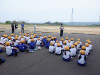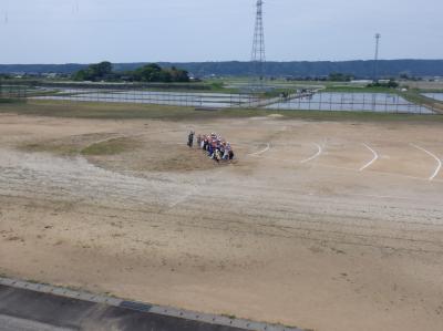 運動場を通って、田んぼへ。いってらっしゃ~い!
