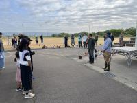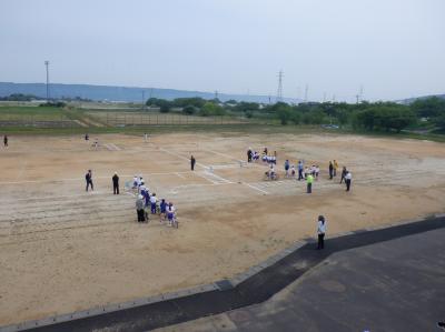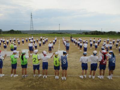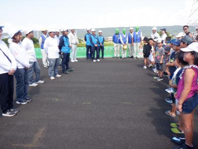 天候はバッチリ! 5・6年生もたくさん参加してくれました。