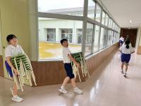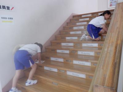 始まる前、階段や玄関などを進んで掃除する5年生の姿が!