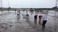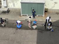 帰ってきたら、順番に泥を落としていきます。教頭先生、準備ありがとう!