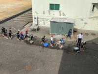 今回は、運動場までの避難経路の確認と、さらに避難が必要になったらどこを通るのかの確認をしました。