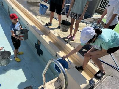 5月27日、プール掃除が行われました。