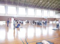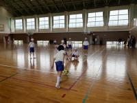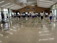 出発前の体育館では、円陣を組む5・6年生が!