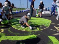 ブラシチームと水チームに分かれて作業しています。