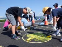 自転車チームは、コースと注意事項の確認です。警察の方の話を、しっかり聞いてますね。