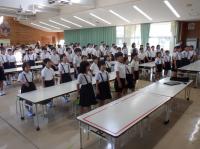 代表の3年生に合わせて、みんなで挨拶をします。