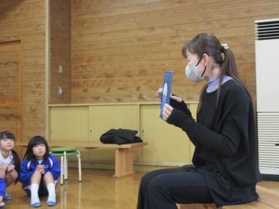 読み聞かせしてくれたのは「どっから来たの大仏さん」、邑知中の1年生が作成した絵本です。