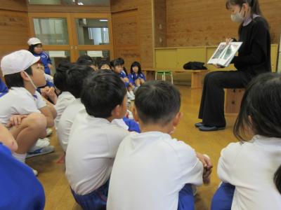 「人権」という言葉の意味を教えてもらったり、紙しばいを見ていじめや勇気について考えたりしました。