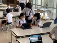 両校の児童同士,アドバイスを送り合いながら,プログラミングを楽しむ様子を見られました。