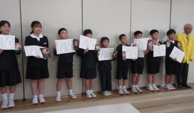 4~6年生が作成した中から、最優秀賞と優秀賞が選ばれ、表彰式が行われました。
