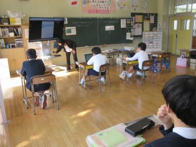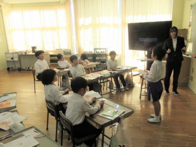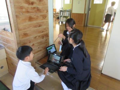11月18日、3年生が国語で作成した「すがたをかえる○○」を、4年生に発表してくれました。