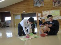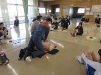 命の大切さについて考えたり、心臓マッサージ(胸骨圧迫)を体験したりしました。