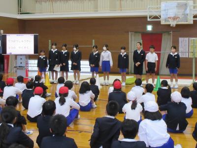 邑知小の虫歯の現状や歯みがきの大切さを発表してくれました。