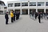 4月9日(木)今年も交通事故「0!」を願って交通安全教室が開かれました。羽咋警察署、飯山、大町両駐在所の警察官の方々や交通安全協会の方々の協力を得て、全校生徒に交通安全に関する講義、 1年生には自転車の実技指導が行われました。